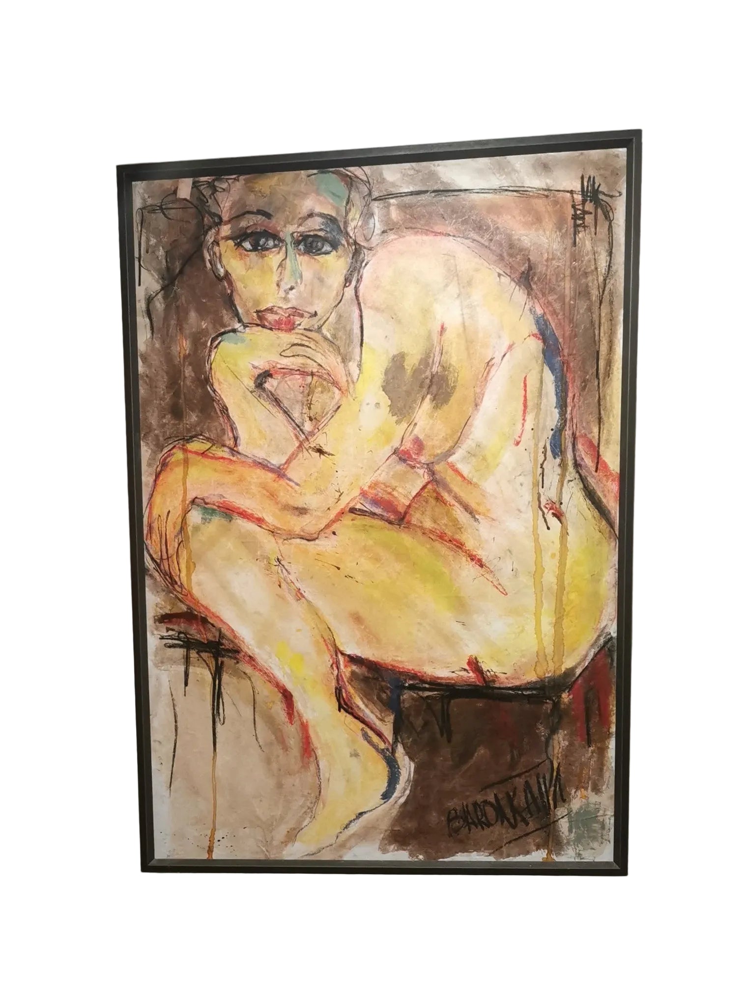 Technique mixte sur papier collé sur support carton plume avec cadre.